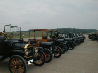 The Model T's at the 2000 Ohio Jamboree are shown here parked in two long rows | |||||||||||||||||||||||||||||||||