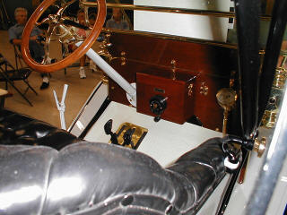 This picture of the interior points out one of Bill's other great talents. He is also a violin maker. Notice the deep wood tones on the firewall and the steering wheel. The combination of rich wood grains, black leather, polished brass, sparkling clean glass, assorted jet black castings and a white rubber mat make this car a beauty to behold. The untrained eye will never be able to distinguish this car from a restored original. Once again, Great work Bill! | ||||||||||||||||||||||||||||||||||||||||||||||||||