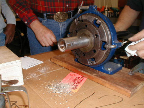 The bushings that hold the alignment of both the crank and universal are pressed in from the ends of the transmission. The small end must be set just inside the radius for all of the parts to mate properly. Don't take shortcuts here. A mistake can cost a lot of time. | ||||||||||||||||||||||||||||||||||||||||||||||||||||||||||||||||