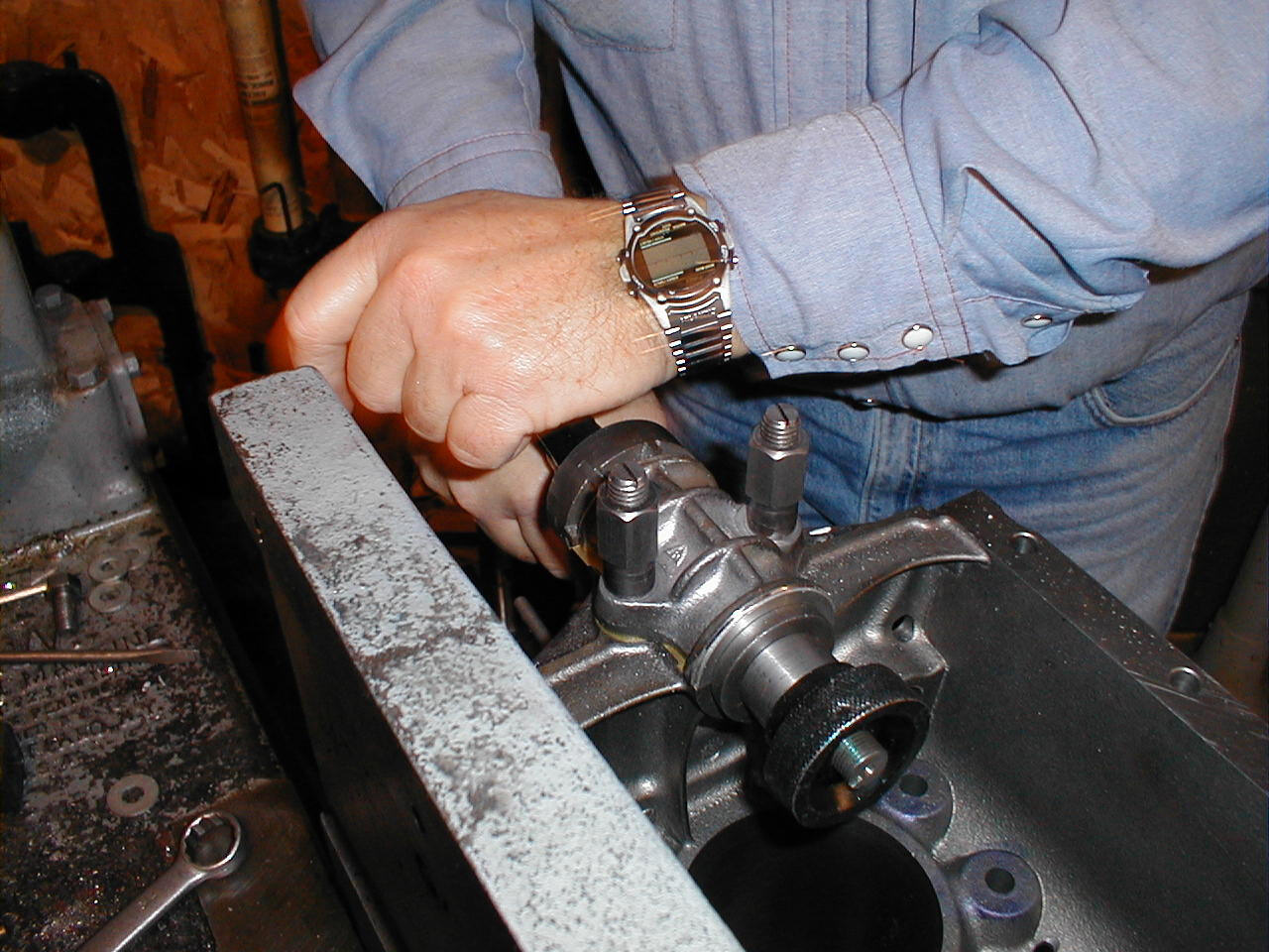 | The rear main is the most important bearing. It sets all of the end play for the transmission. I've learned from Jack that the tooling is the secret to making everything fit properly. |