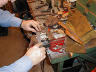 | Once the babbit has cooled, the chills are removed and the extra sprue is knocked off with a swift smack of the hammer. |