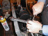 | The crank is set into place and the bearing reworked until it fits perfectly in place. |